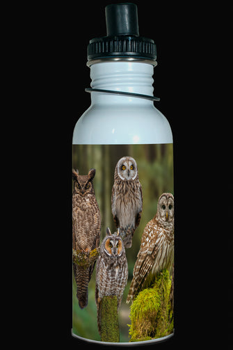 600ml Water Bottle - OWMO 001 - Owls on Moss